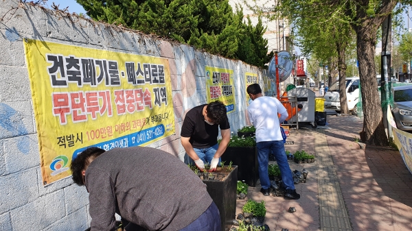 [세종타임즈] 천안시 일봉동은 20일 관내 상습 생활폐기물 불법 투기 지역인 다가동 355-1번지 일원에 꽃박스를 설치했다고 밝혔다.