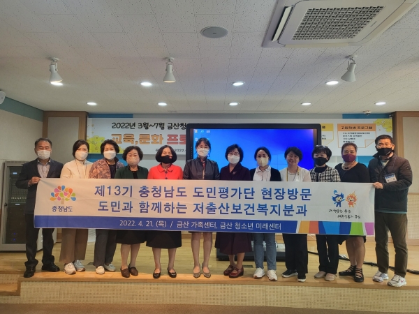 [세종타임즈] 충남도는 제13기 도민평가단 ‘저출산보건분과’ 위원들이 금산군에 위치한 가족센터와 청소년 미래센터를 방문해 현장평가를 실시했다고 21일 밝혔다.