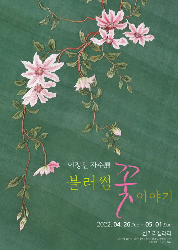 [세종타임즈] 작가 이정선의 ‘블러썸 꽃 이야기’ 자수 전시가 오는 26일부터 다음 달 1일까지 천안 삼거리 갤러리에서 열린다.