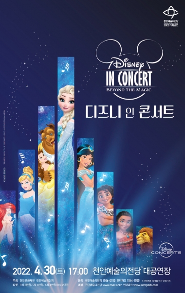 천안에서 처음 선보이는 ‘디즈니 인 콘서트’는 대형 스크린에 펼쳐지는 디즈니 오리지널 영상과 오케스트라 연주, 국내 정상급 뮤지컬 배우들의 노래로 꾸며지는 공연이다.