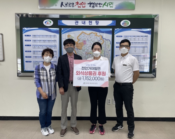 [세종타임즈] 천안시 성환읍은 28일 천안가야밀면이 가정의 달을 맞이해 115만원 상당 외식상품권을 기부했다고 밝혔다.