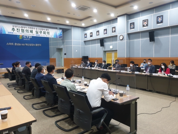 도 관계 공무원과 천안·아산시, 충남테크노파크, 삼성디스플레이 및 협력 기업 등 18명이 참석한 가운데 연 이번 회의는 안건 토론, 질의응답, 의견 수렴 등의 순으로 진행했다.