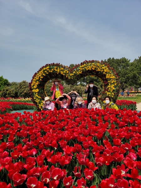 이날 복지관 수행인력 7명과 돌봄어르신 35여명은 태안군 꽃지 해안공원 튤립축제를 찾아 조별로 자유롭게 꽃을 관람하며 추억을 만들었다.