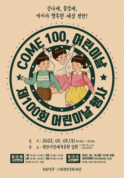 [세종타임즈] 천안시가 올해로 100번째 생일을 맞이한 어린이날을 맞아 ‘신나게, 즐겁게, 아이가 행복한 세상 천안’을 주제로 풍성한 볼거리와 즐길거리를 마련했다.