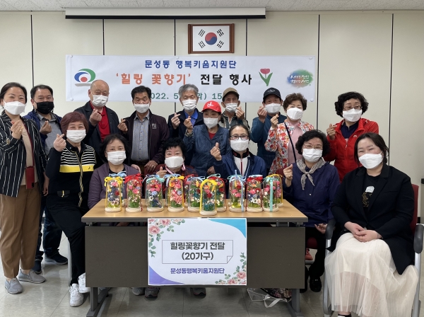 이명진 행복키움지원단장은 “어르신들께서 단원들과 정성을 담아 만든 꽃을 보며 밝은 기운을 받아 건강하고 따뜻한 5월을 보냈으면 한다”고 답했다.