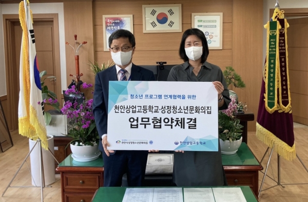 정일현 성정청소년문화의집 센터장은 “이번 협약을 통해 천안상업고 청소년들에게 활동공간을 지원하고 양 기관이 협력해 청소년들에게 유익한 활동을 운영하겠다”고 말했다.