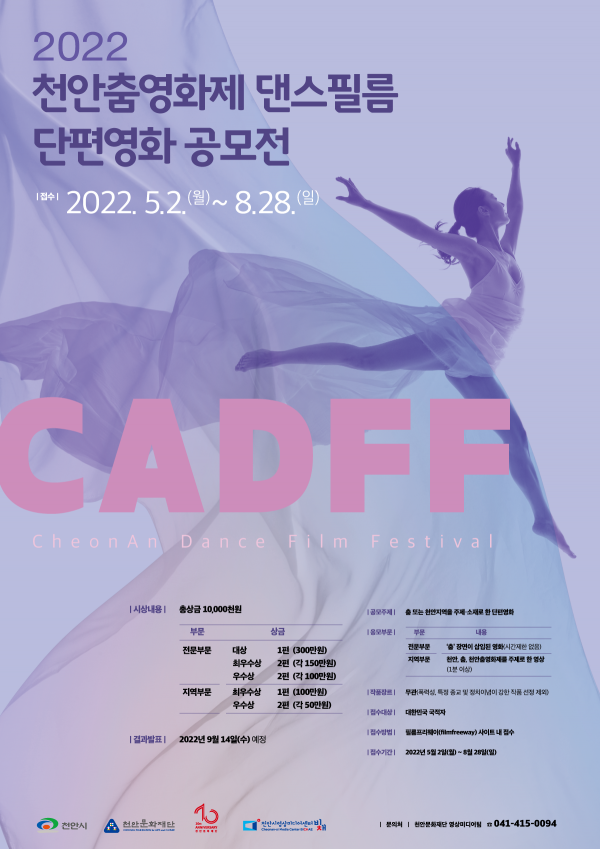 [세종타임즈] 천안문화재단 천안시영상미디어센터는 오는 8월 28일까지 ‘2022 천안춤영화제 댄스필름 단편영화 공모전’을 운영한다고 밝혔다.