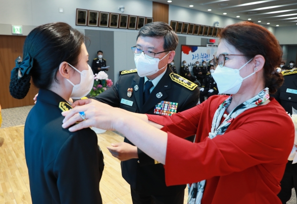 김연상 소방본부장은 신규 소방공무원들에게 임용장을 수여했으며 부모가 직접 계급장을 달아주며 축하하는 뜻깊은 자리도 마련했다.