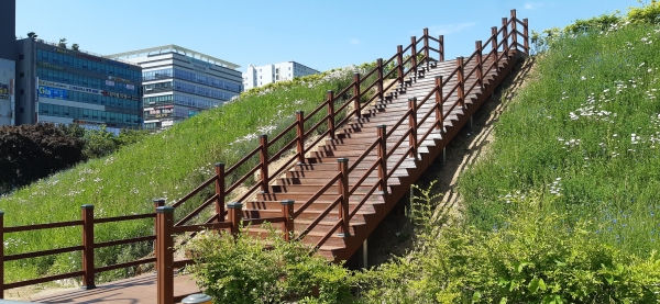 [세종타임즈] 천안시는 불당동 천안시민체육공원에 불당2동 방향을 연결하는 보행자 목재 계단을 설치했다.