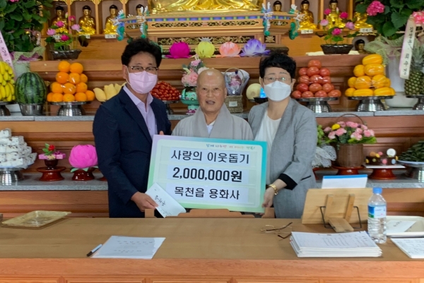 [세종타임즈] 천안시 목천읍은 목천읍 소재 용화사가 12일 관내 소외계층을 위한 후원금 200만원을 기탁했다고 밝혔다.