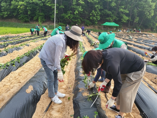 이날 행사는 휴경지인 목천읍 서리 일원 약 1,650㎡ 규모의 밭에서 실시됐으며 회원 30여명이 참여해 사랑과 정성을 담아 고구마를 심으며 구슬땀을 흘렸다.