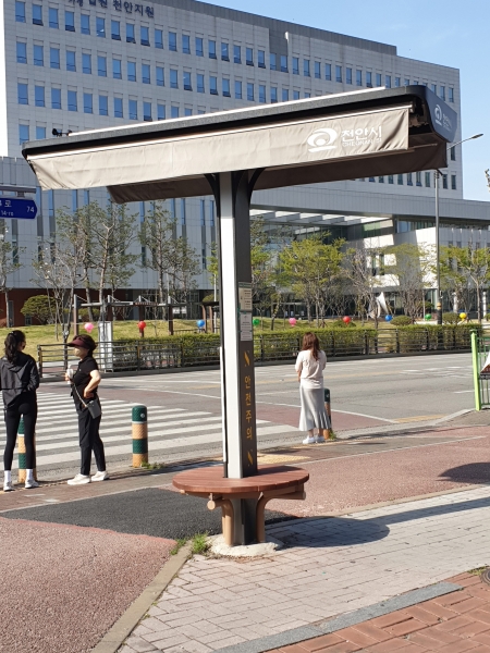 청룡동에 거주하는 차순미 씨는 “천안 행정의 중심이 되는 청수행정타운에 수도권이나 다른 도시처럼 천안시 최초 그늘막 의자가 생겨 기쁘다”며 무더운 여름에도 횡단보도를 기다리는 동안 그늘 밑에 앉아서 휴식을 취할 수 있겠다”고 말했다.