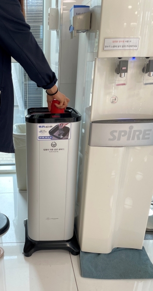 이번에 설치된 텀블러 자동살균세척기는 세제나 약품 없이도 물을 전기 분해해 10초 이내에 텀블러를 자동 살균 세척할 수 있어 사용이 간편하다.