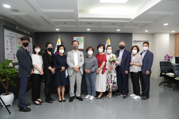 박상돈 천안시장은 지난 14일 시장실에서 소외계층에 민·관 협력 사랑의 식사지원에 동참한 봉사자들을 격려했다.