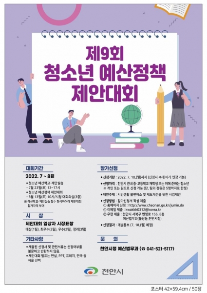 [세종타임즈] 천안시가 주민참여예산제를 더욱 효과적으로 운영하기 위해 ‘제9회 청소년예산정책제안대회’를 개최한다.