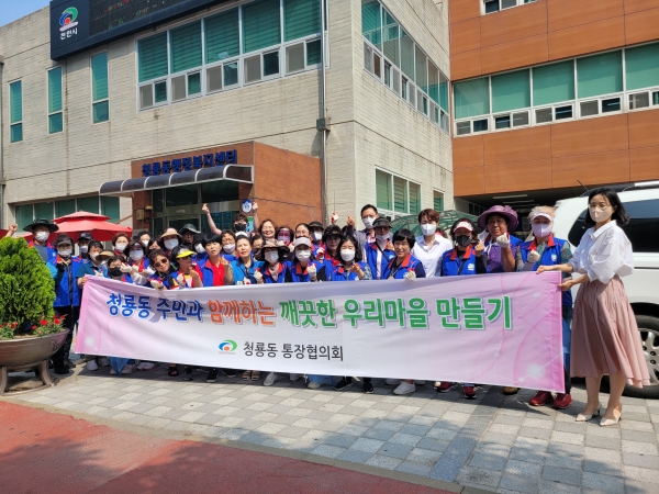 청룡동 통장협의회는 지난 4월부터 깨끗한 청수행정타운 만들기를 위한 청룡동 연합회 활동에 정기적으로 참여 중이며 청룡동 연합회는 300여명의 자생단체원과 청룡동 주민들이 청수지구 내 주택지역 분리수거 취약지역과 청수행정타운을 대상으로 쾌적한 정주 환경을 조성하고자 노력하고 있다.