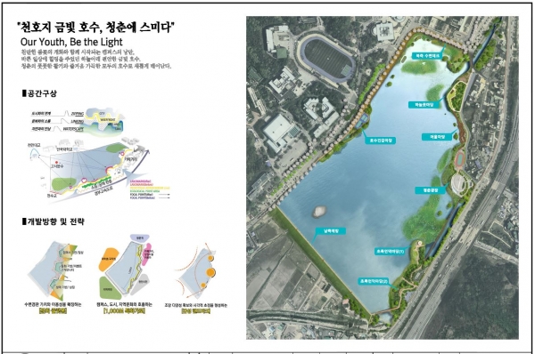 시는 기존 체육시설과 산책로 위주의 공원시설이 호수 주변 여건과 다양한 시민의 요구사항을 반영하지 못하고 있는 것을 인지하고 2021년 1월 설계 공모를 진행해 같은 해 4월 공모당선작을 선정했다.