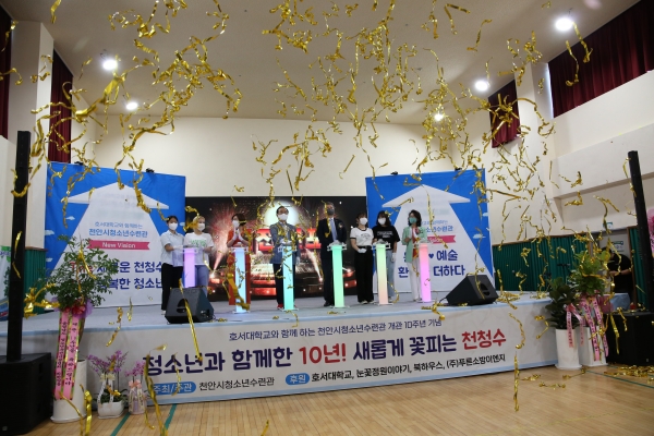 지난 10년의 성장을 축하하고 새로운 도약을 위한 비전 공유를 위해 마련된 이번 기념행사는 청소년의 축하공연을 시작으로 대표 청소년동아리와 천안소년소녀합창단의 축하공연에 이어 축사 등이 펼쳐졌다.