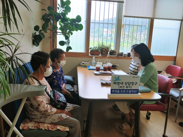 파랑새 상담창구는 보건진료소에 내방하는 주민들을 대상으로 보건·복지서비스 등을 안내해 복지 또는 의료위기 대상자를 발굴하고 대상자들에게 맞춤형 복지를 지원한다.