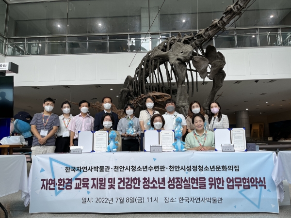 [세종타임즈] 천안시청소년수련관은 한국자연사박물관, 천안시성정청소년문화의집과 지난 8일 천안시 청소년들의 건강한 성장실현과 자연·환경 교육 지원을 위한 업무협약을 체결했다고 밝혔다.