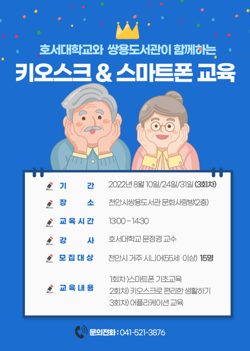 [세종타임즈] 천안시 쌍용도서관은 호서대학교와 협력해 ‘시니어를 위한 키오스크 및 스마트폰 교육을 운영한다.