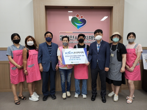 이번 후원금은 천안능수로터리클럽을 통해 관내 무료급식소, 지역아동센터, 장애인복지시설 이용자 등 32개소 1,800여명에 전달될 제과·제빵에 사용된다.