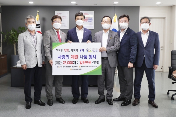 [세종타임즈] 천안시와 천안시복지재단은 지난 22일 대전충남양계농협과 나눔축산운동본부 충남도지부가 천안시청에서 취약계층 지원을 위해 계란 7만5,000개를 기부했다고 밝혔다.