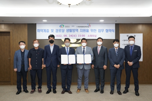 [세종타임즈] 천안시는 방역 취약계층과 관내 경로당에 생활 방역 지원 서비스를 제공하기 위해 지난 24일 시청 소회의실에서 두리장애인복지회와 업무협약을 재체결했다.