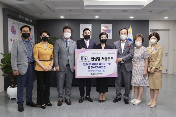 [세종타임즈] 인셀덤 서울본부는 지난 5일 관내 취약계층을 위해 사용해 달라며 후원금 5,000만원을 천안시복지재단에 전달했다.