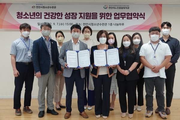 [세종타임즈] 천안시청소년수련관은 지난 7일 세대 간 교류를 통한 청소년의 건강한 성장지원을 위해 천안시노인종합복지관과 상호 업무협약을 체결했다고 밝혔다.