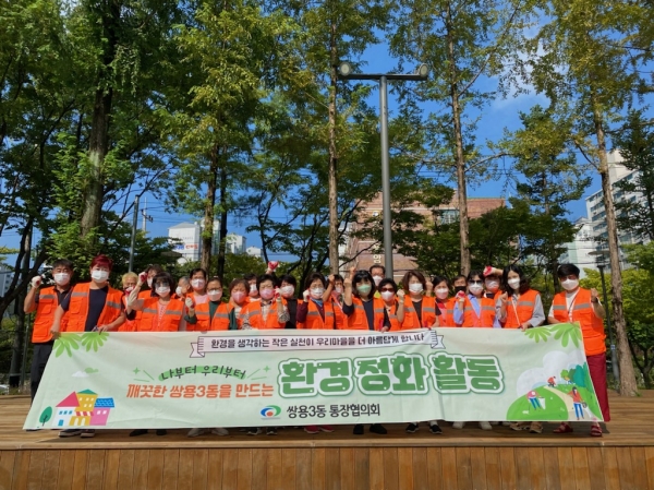 이미화 쌍용3동장은 “바쁘신 가운데 쾌적한 쌍용3동을 위해 환경정비 활동에 참여해주신 통장님들께 감사의 말씀을 드린다”며 “앞으로도 쌍용3동을 깨끗하고 살기 좋은 동네로 인식될 수 있도록 최선을 다하겠다”고 말했다.