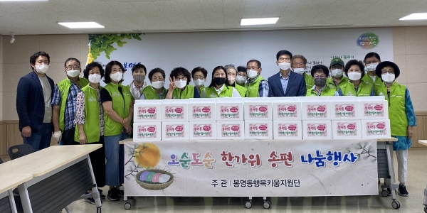 [세종타임즈] 천안시 봉명동 행복키움지원단은 지난 7일 추석명절을 맞아 지역 내 저소득 취약계층 100가구에 추석맞이 송편 나눔 행사를 실시했다.
