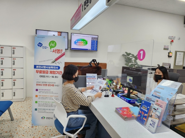 한진석 불당2동장은 “이번 무료발급 체험 기간에 많은 주민분이 편리하고 안전한 본인서명사실확인 제도를 알고 확인서를 무료로 발급받아 제도가 활성화되길 기대한다”고 말했다.
