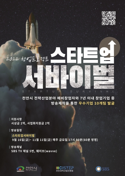 ‘2022 창업 프로젝트 스타트업 서바이벌’은 천안시가 그린 스타트업 타운 조성에 따라 참신한 아이디어와 창업 아이템을 보유한 우수 스타트업을 발굴하기 위해 SBS와 전국 지자체 최초로 기획·추진한 오디션 프로그램이다.