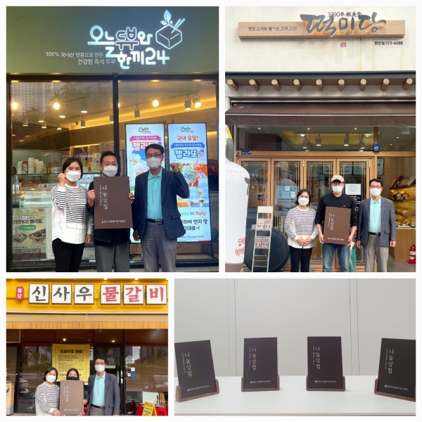이번에 이웃과 행복을 나누는 나눔상점으로 선정된 4개소는 신사우물갈비 본점 , 진이찬방 신불당점, 떡미당 천안점, 오늘두부와한끼24 천안불당점이다.