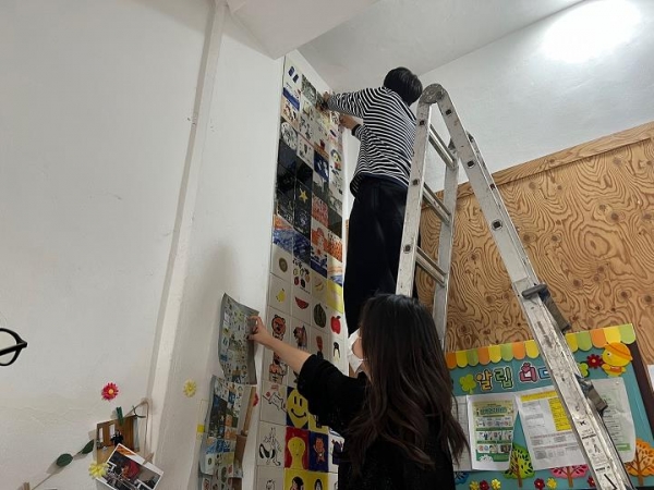 [세종타임즈] 천안시서북구공립지역아동센터는 남서울대학교 유리세라믹디자인학과 지원으로 지난 23일부터 24일까지 벽화 그리기 작업을 마쳤다고 밝혔다.