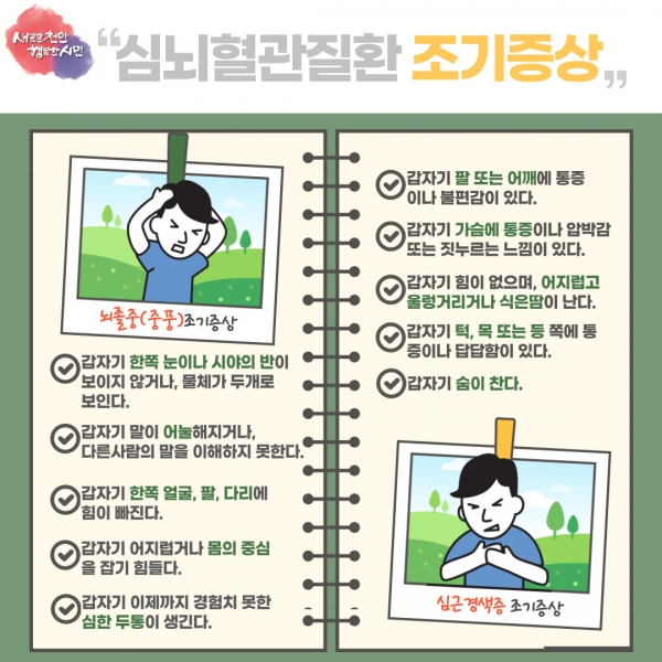 심뇌혈관질환 조기 증상이 발현했을 때는 신속하게 치료를 받아야 하므로 조기 증상 인지가 중요하다.