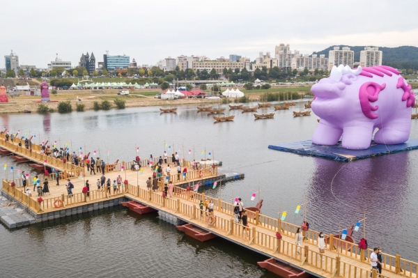 백제문화제를 찾은 관람객이라면 금강 위에 떠 있는 거대한 상징물에 자연스레 눈길이 간다.