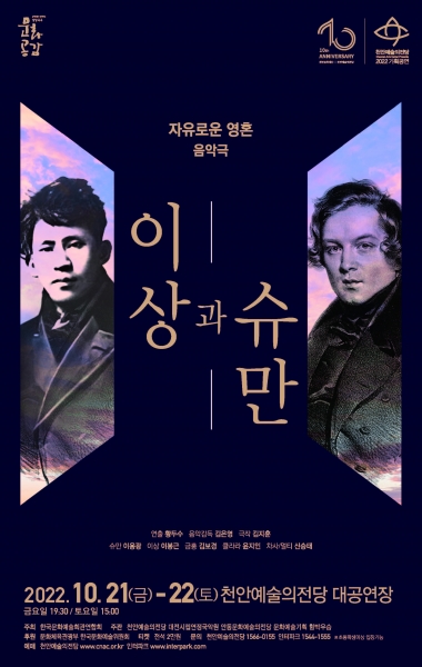 음악극 ‘자유로운 영혼 이상과 슈만’은 한국 시사 최고의 아방가르드 천재 시인 ‘이상’과 독일의 작곡가로 고전주의 형식의 틀을 깨고 시대를 대변한 진정한 낭만주의자 ‘로베르트 슈만’의 삶을 이야기한다.