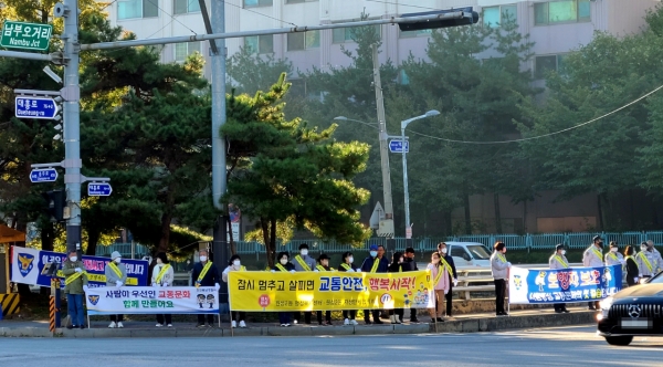 캠페인 참여자들은 최근 증가하는 관내 교통사고 사망사고와 관련해 교통안전의 중요성을 다시 한번 환기하고 안전한 교통문화를 조성하기 위해 교통안전 수칙을 시민들에게 홍보했다.