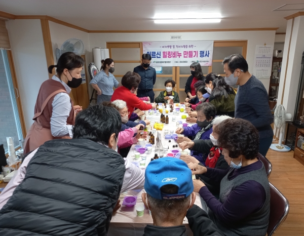 천안시복지재단의 지원을 받아 추진된 이번 행사는 전문강사가 5개소 경로당을 방문해 꿀과 입욕제, 허브 가루 등 재료를 이용한 비누 만들기를 진행했다.