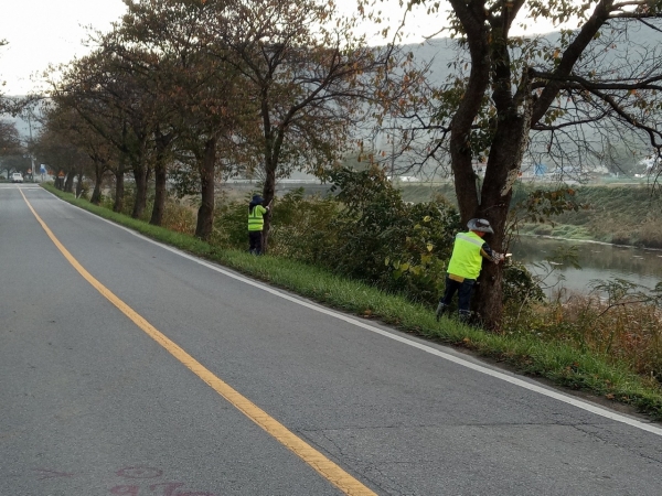 북면은 지난달 11일부터 연춘리~운용리 약 15km 구간의 벚나무를 대상으로 가지치기와 추비작업을 실시했다.