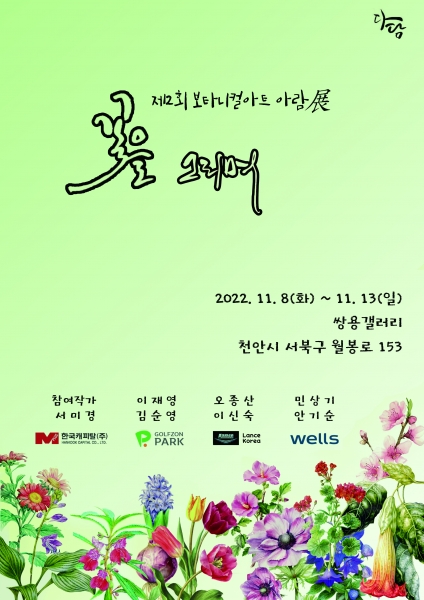[세종타임즈] 천안시 쌍용도서관 갤러리는 오는 11월 8일부터 13일까지 ‘제2회 보타니컬아트 아람 전시회’를 운영한다고 3일 밝혔다.