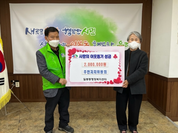 김용경 일봉동장은 “한파에 어려움을 겪을 것으로 예상되는 이웃들을 위해 ‘따뜻한 겨울나기’ 사업에 동참해주신 주민자치위원회에게 감사드린다”며 “앞으로도 주민 복지욕구에 맞는 지역복지사업을 펼쳐 사회적 선 실현을 위해 더욱 노력하겠다”고 답했다.