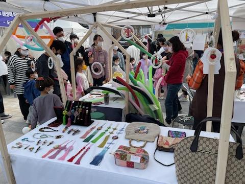 시민문화여성회관은 제과제빵, 전통매듭, 프랑스자수, 캘리그라피, 도자기, 포크아트 등 수강생이 직접 만든 작품을 플리마켓 부스 형태로 전시했다.