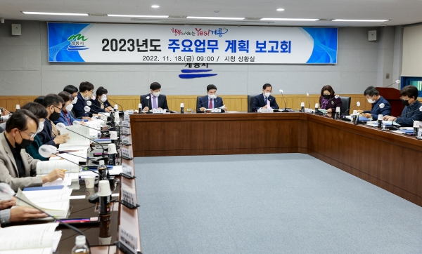 이응우 시장을 비롯한 관계 공무원 등 40여명이 참석한 가운데 2023년 시정운영방향 설정과 주요 사업계획 수립을 위해 열린 이날 보고회에서는 2022년 시정 운영에 대한 주요 성과 분석 내년도 시정운영 방향, 추진전략 및 역점 추진과제 제시 그에 따른 부서별 주요업무 추진에 대한 구체적인 계획 등이 논의됐다.