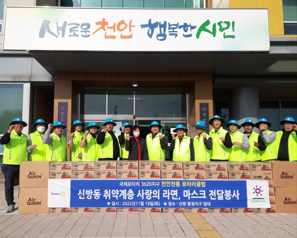 [세종타임즈] 천룡로타리클럽은 지난 19일 겨울철을 맞아 소외된 어려운 이웃을 위해 라면 60박스를 신방동에 기탁했다.