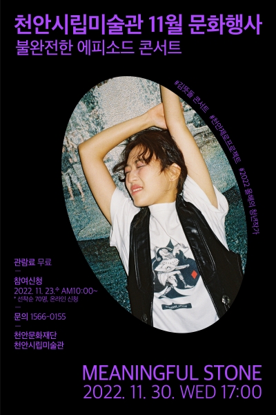 천안제로프로젝트 ‘2022 올해의 청년작가’ 전시와 연계해 진행될 이번 문화행사에서는 뮤지션 ‘김뜻돌’이 참여해 라이브 공연을 선보일 예정이다.