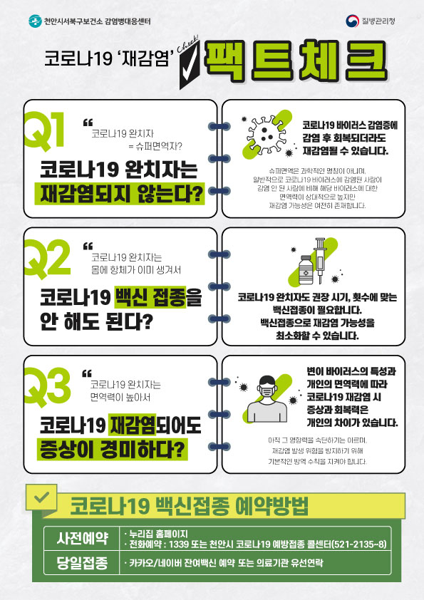 제작한 코로나19 재감염 관련 홍보물을 시민에게 배부해 올바른 정보를 제공하고 일상 방역 수칙이 담긴 현수막을 설치해 개인방역수칙 준수를 독려할 계획이라고 전했다.