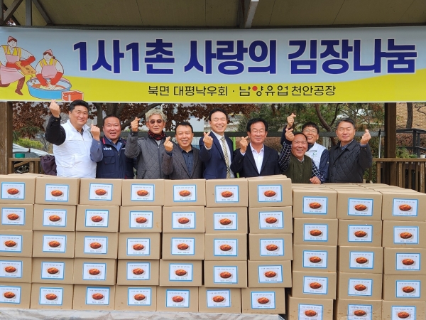 [세종타임즈] 천안시는 북면 대평낙우회와 남양유업 천안공장이 지난 21일~22일 2일간 ‘1사 1촌 사랑의 김장나눔’ 행사를 개최했다고 밝혔다.